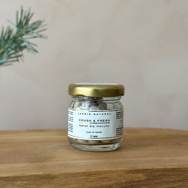 Crush & Fresh Tablet Diş Macunu, diş macununun tek kullanımlık tablet versiyonudur. Katı formda olduğu için koruyucu içermez. Dişlerin temizlenmesine yardımcı olur. İçeridiğinde yapay esans bulunmayan Crush&Fresh Tablet Diş Macunu, aromasını doğal kristal mentol ve tarçın uçucu yağından alır.